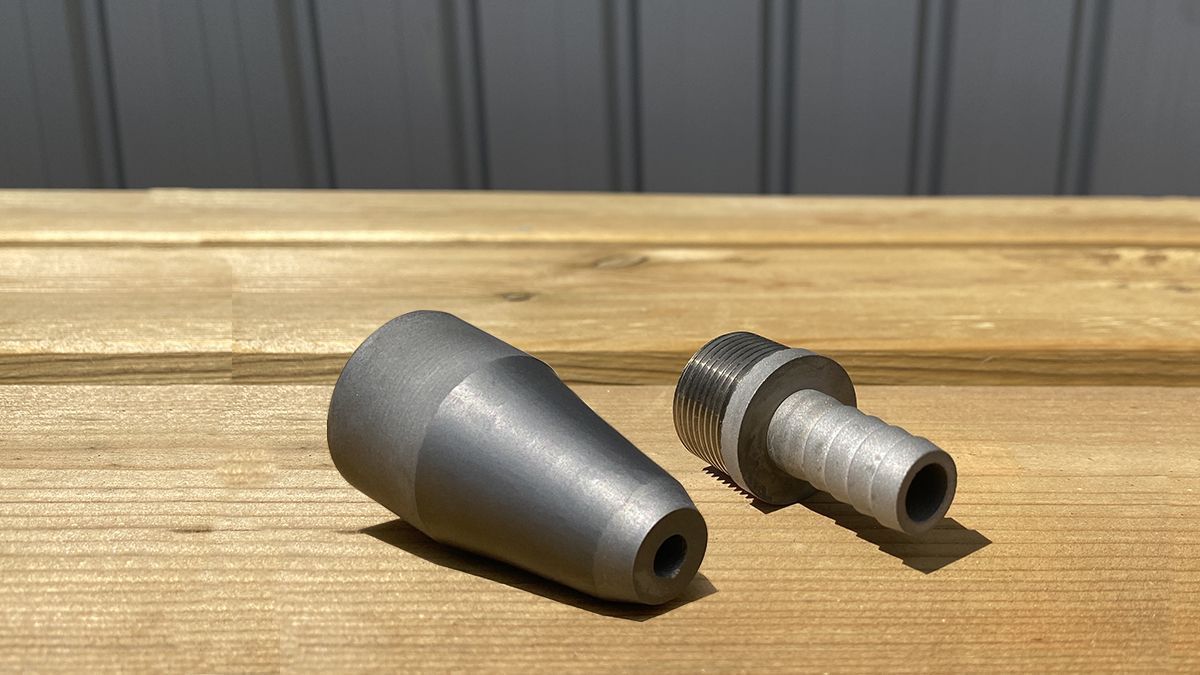 Assez logiquement, les pièces en contact avec les buses s’usent aussi progressivement. Il s’agit des porte-buses et des cannelés. Les cannelés sont des pièces métalliques de 2 à 3 cm de long que l’on visse sur les porte-buses pour les raccorder au tuyau de sablage. En cabine de sablage, on doit parfois remplacer le pistolet en plus des buses en céramique qu’il supporte.